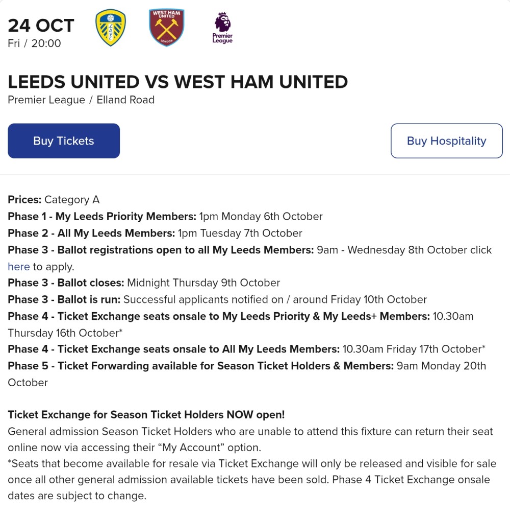 チケットエクスチェンジ(TX)は、試合の約10日前にオープンし、My LEEDS+メンバーからは優先的に利用できます。