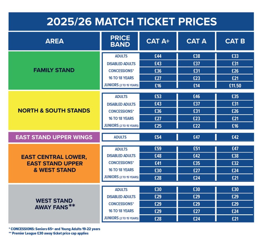 チケット価格は良心的で、カテA+の最も高額な席で£59です。