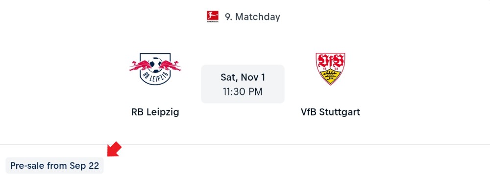 英語版だと、最も早いフェーズの発売日しか記載されていませんが、ドイツ版で表示し、「Zum Spieltag(試合当日)」をタップすると、各販売フェーズの発売日が表示されます。